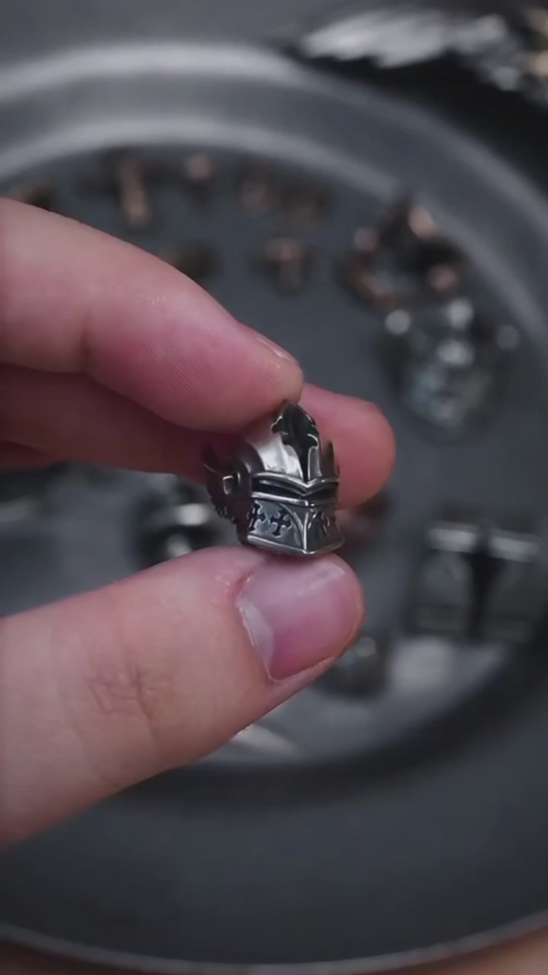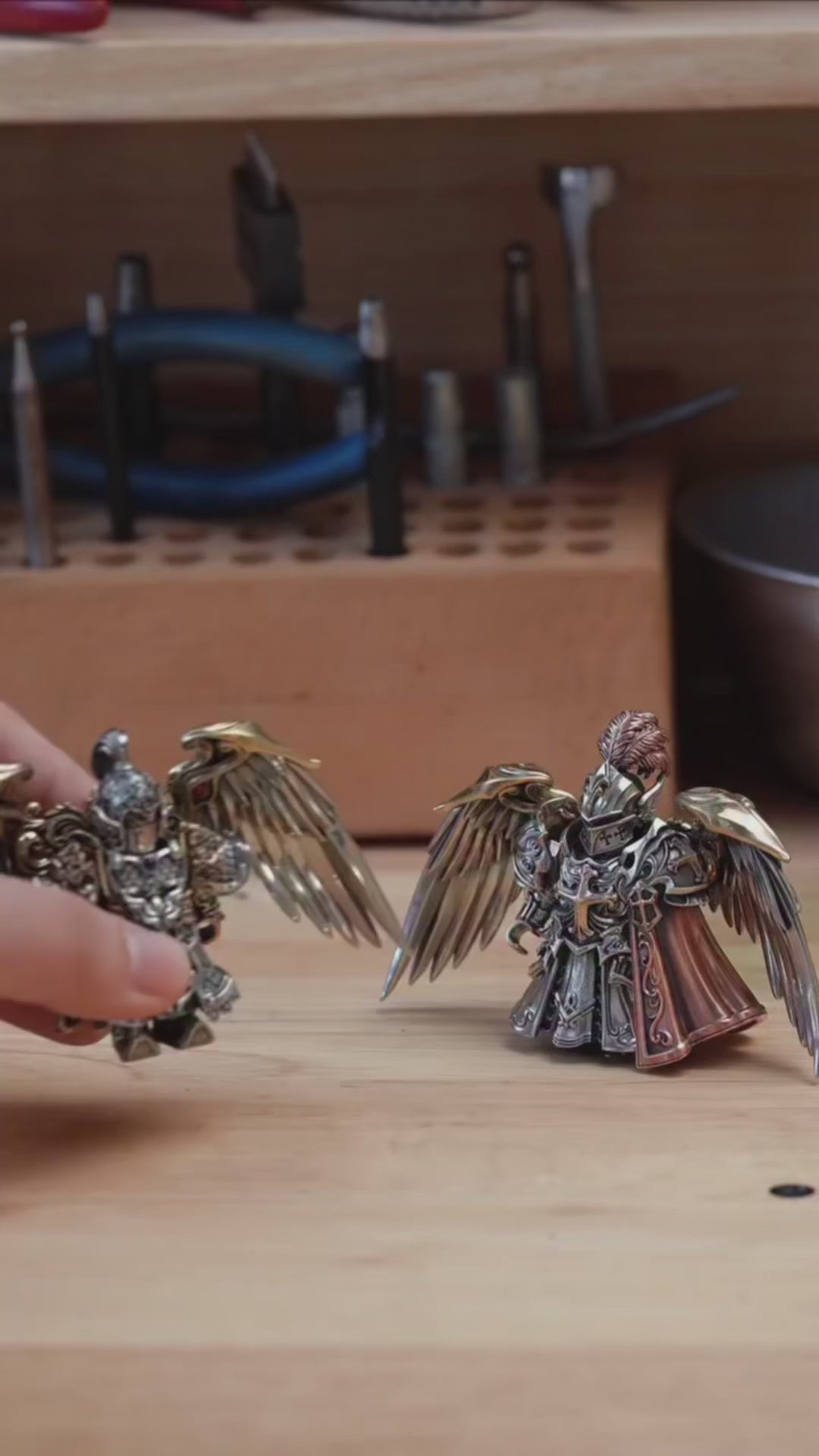 Metal alloy + premium resin with hand-applied patina. Minor tone/texture variations are normal and certify hand work.